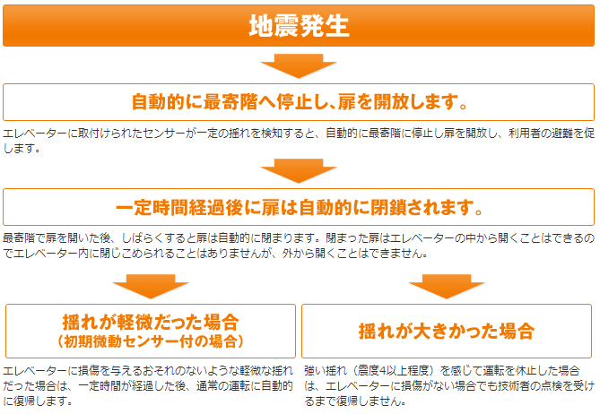 故障・事故などを未然に防ぐとともに緊急や地地震発生時の利用者の安全を守るために、高度な安全機能を備えています。ご利用中、万が一のことがあっても、落ち着いた行動を心がけてください。